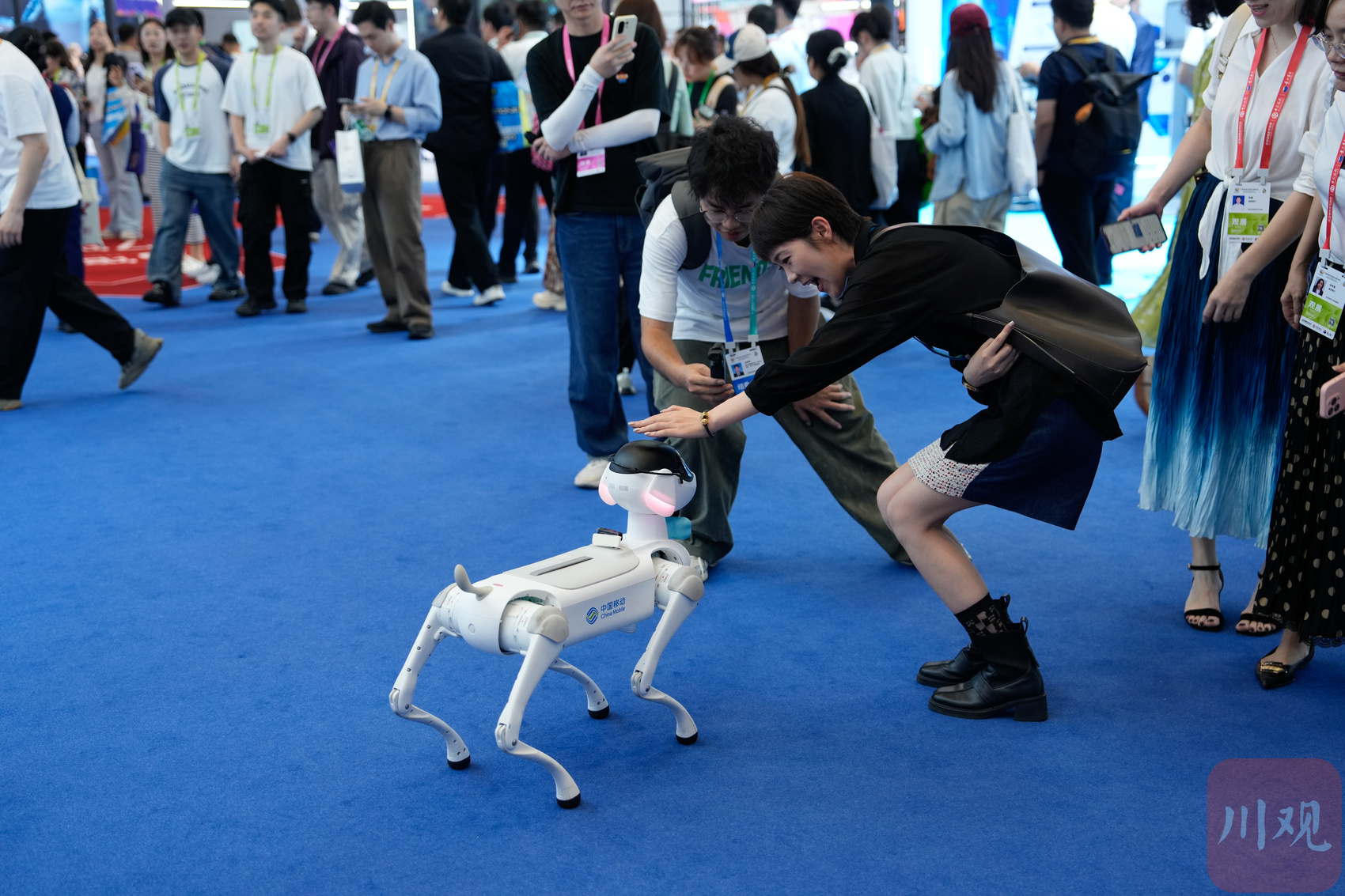 大家与机器狗互动。郝飞 摄