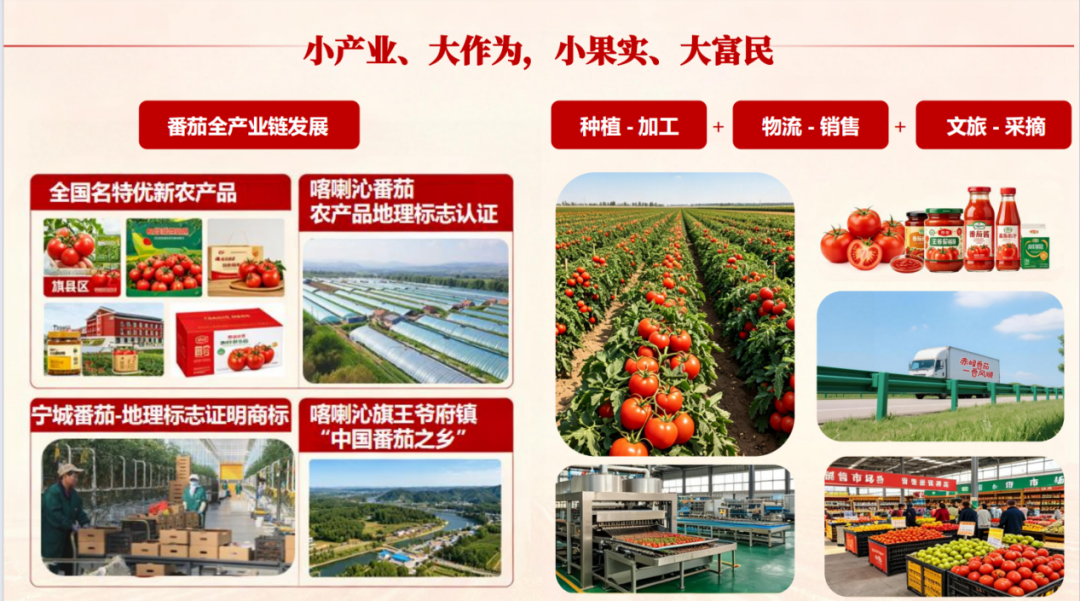 一颗小番茄,撬动百亿大产业。在内蒙古赤峰,番茄早已不是普通果蔬,而是串联起 “ 品质升级 ”、“ 品牌崛起 ”、“ 科技赋能 ” 的富民引擎, 蹚出了一条“特色种养—标准生产—品牌溢价—全链增值”的乡村振兴新路径,并 成为北方设施农业高质量发展的鲜活样本。