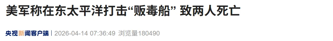 据央视新闻,当地时间4月13日,美国南方司令部表示,其在东太平洋实施了一次打击“贩毒船”行动,造成两人死亡。