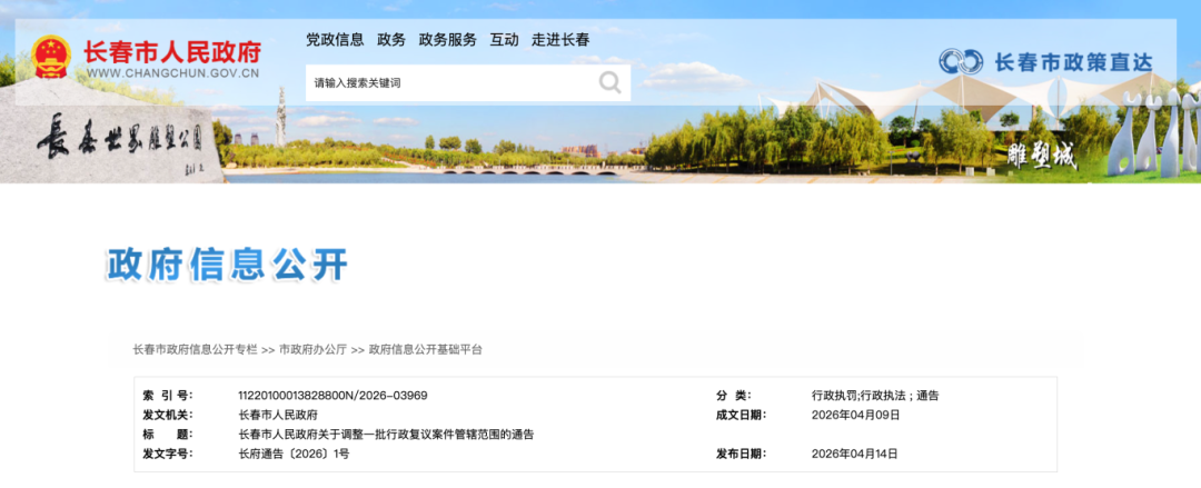 原文标题:长春市人民政府关于调整一批行政复议案件管辖范围的通告