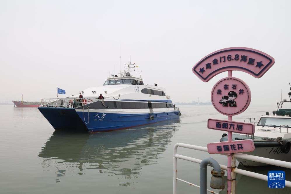 4月3日,泉金“小三通”客运航线“八方”轮缓缓驶向福建南安泉金客运码头。图源:新华社