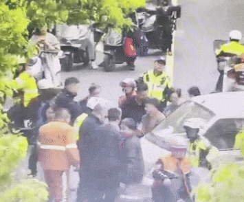 当时,杭州公安交管西湖大队文教中队队长金凯也在现场,他和两位骑警很快分工合作,一边疏导交通,一边组织大家抬车。“来来来,师傅们都来帮帮忙。”