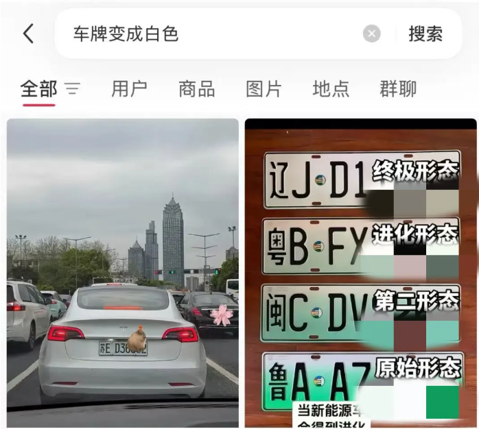 记者通过社交平台搜索发现,国内多地均出现白底黑字的新能源汽车号牌,相关贴文的发布者表达了对于这种车牌风格的喜爱,认为其更具高级感。