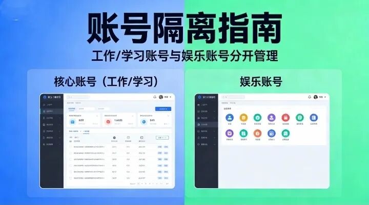 账号隔离工作、学习账号与娱乐账号分开,避免核心账号泄露牵连全局。