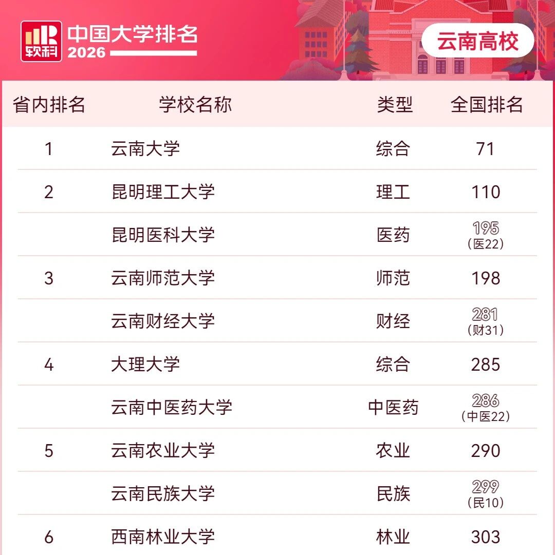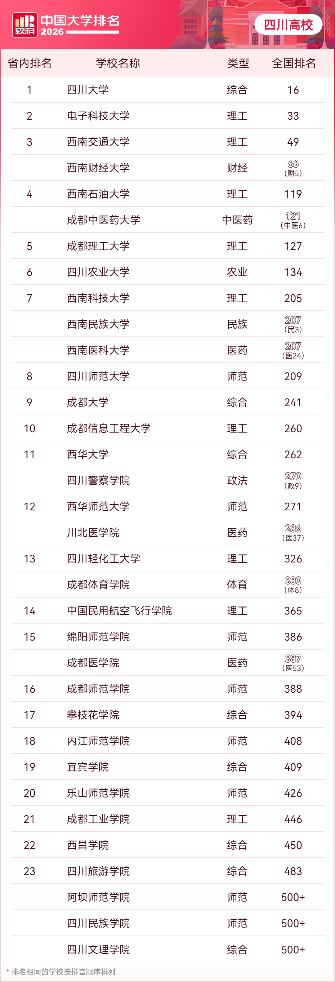 2026软科中国大学排名中,四川共有43所高校榜上有名,果然是名不虚传,热烈祝贺。