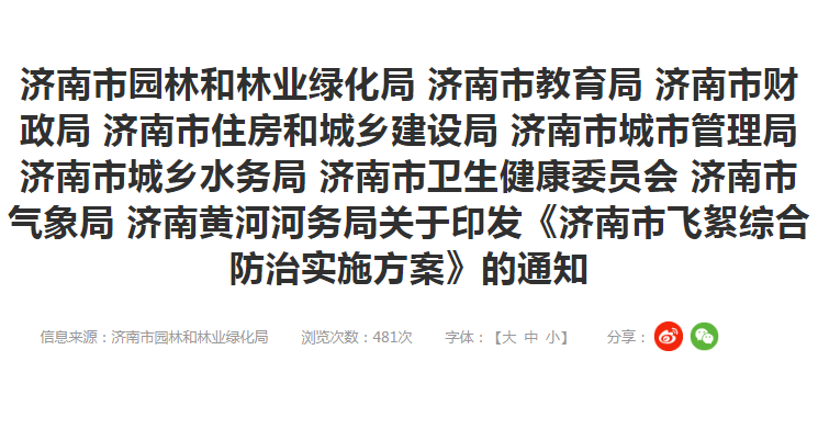 近日,济南九部门印发《济南市飞絮综合防治实施方案》。