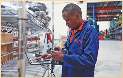 肯尼亚首都内罗毕近郊的电商企业Kilimall仓库内,当地工作人员在复核订单。 本报记者 黄炜鑫摄