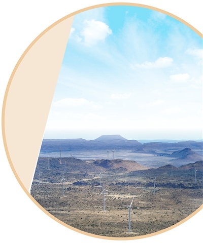 在南非北开普省德阿镇拍摄的德阿风电项目风机。该项目由中国国家能源集团龙源电力南非公司建成投运,总装机容量24.45万千瓦。 新华社记者 韩 旭摄