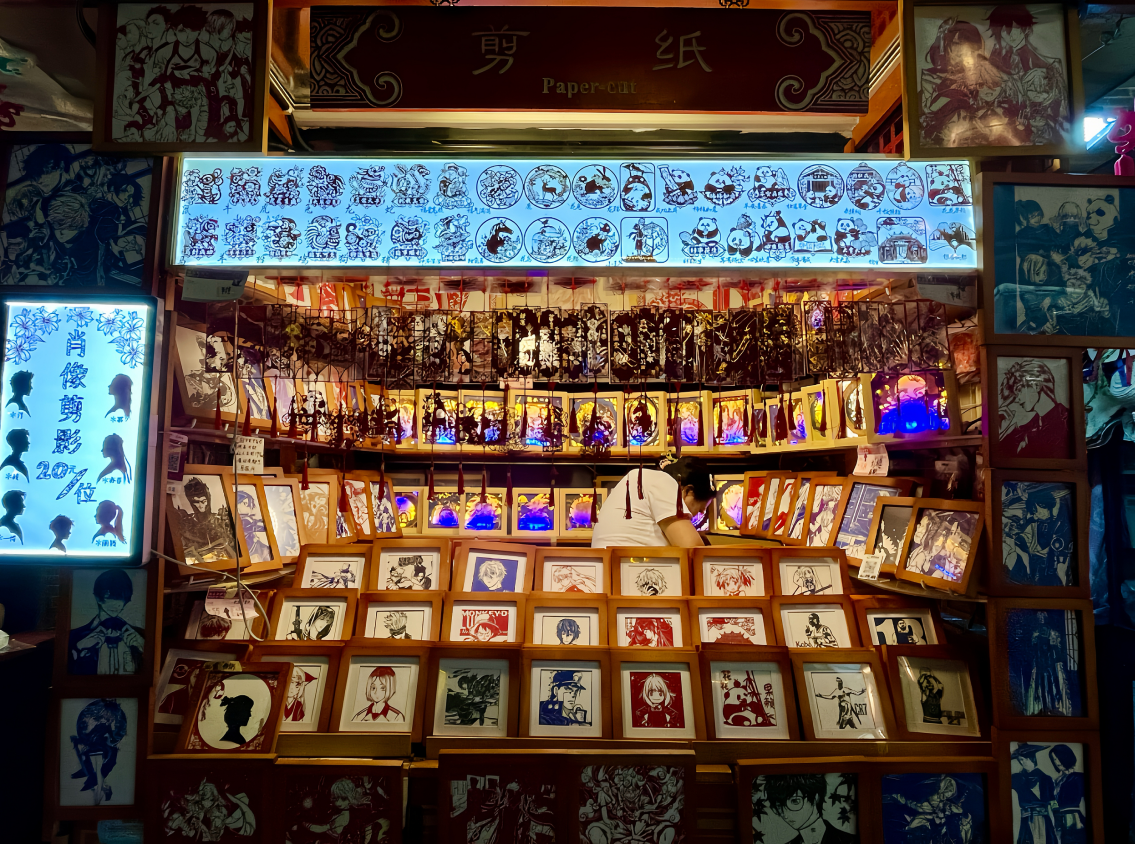 而锦里这家二次元剪纸小铺的出现,恰好为这一困境打开了思路。锦里剪纸小铺以传统手艺和次元文化审美的创新组合,让千年剪纸从民俗窗花变身为潮流周边。每天吸引大量学生、漫迷、游客排队定制角色剪纸,很多人因被社交媒体的分享“种草”而前来打卡,还有人专程从外地赶来,只为拥有一幅“专属角色剪纸”。