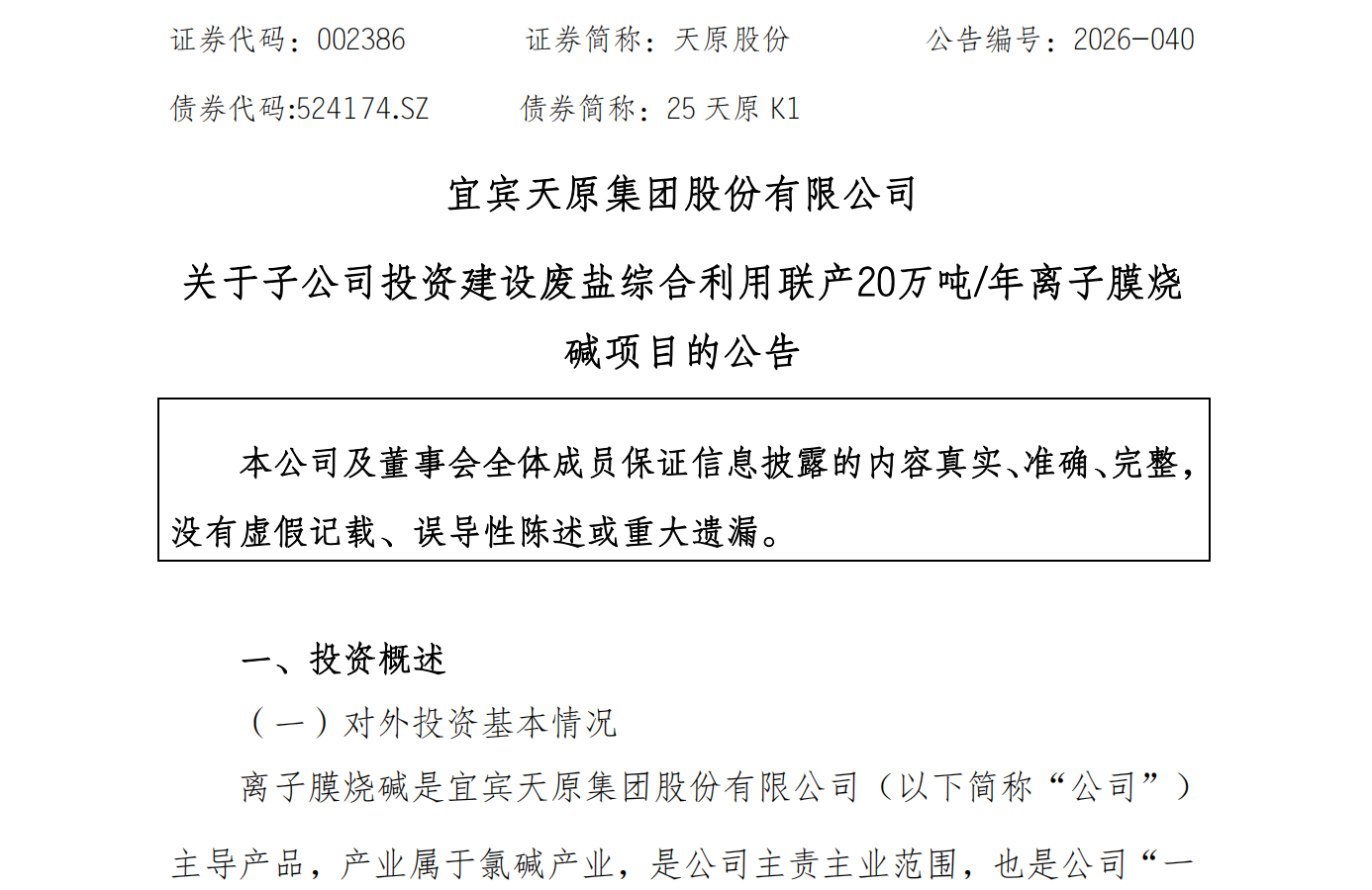 据了解,天原股份年产10万吨氯化法钛白粉项目在运行过程中会产生大量废盐。传统处理方式成本高、环保压力大。而此次拟投资建设的废盐综合利用联产20万吨/年离子膜烧碱项目,将妥善处理氯化法钛白粉生产过程中产生的废盐,并保障氯气资源的稳定供应,进一步延伸拓展基础氯碱化工产业链,促进构建关键资源配套完善、资源高效利用的“氯-钛-磷-铁-锂”一体化绿色循环产业体系。目前,该项目已通过能评审查及环评批复等行政许可。本次投资不构成关联交易,也不构成重大资产重组。