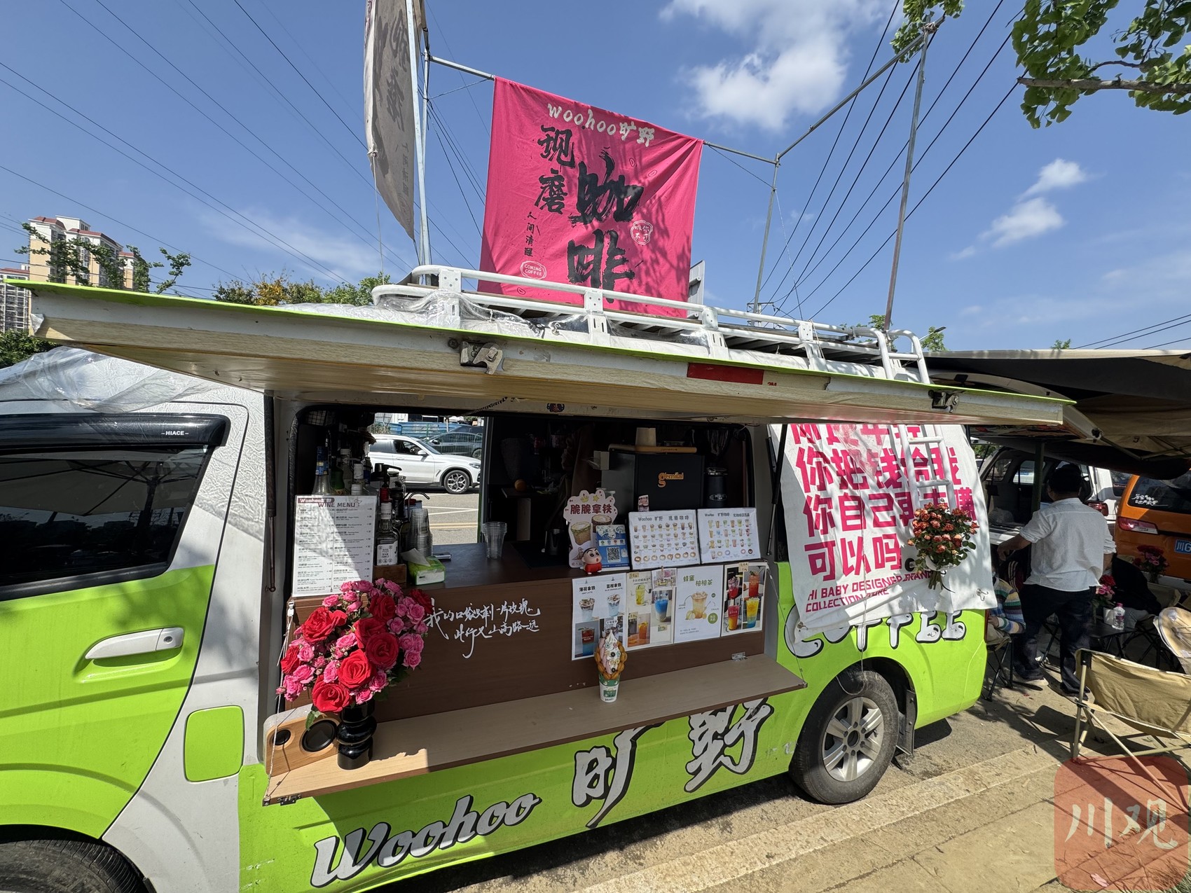 旷野移动饮品车的摊主媛媛,便是抓住流量的一员。“在网上看到这里爆火,我们周一就赶过来了。”她坦言,天气晴好时,前来打卡的游客络绎不绝,饮品销量很可观,单是14日下午短短三四个小时,销售额就轻松突破了五百元。