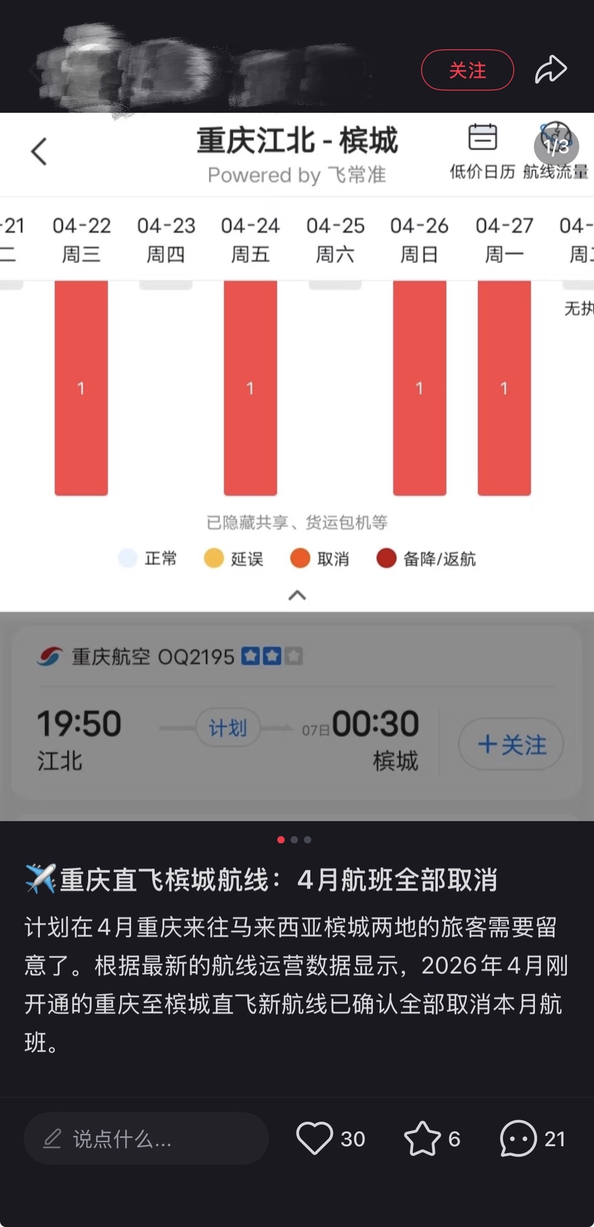 航线的取消,除了中东地区局势影响和季节性航线调整外,记者梳理发现,多家航司近期都出现航班取消,国际航线情况更不乐观。