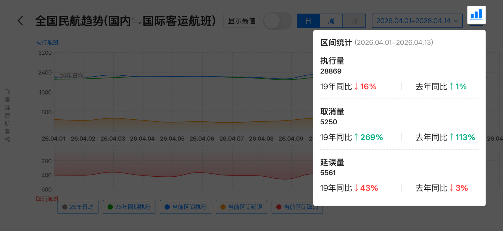 国内航司同样在收缩国际航线。记者查询国航官网发现,4月8日至30日,成都往返吉隆坡的CA483/4航班已取消。飞常准民航看板数据显示,4月1日—14日,国际航线取消5250班次,同比涨幅高达113%。