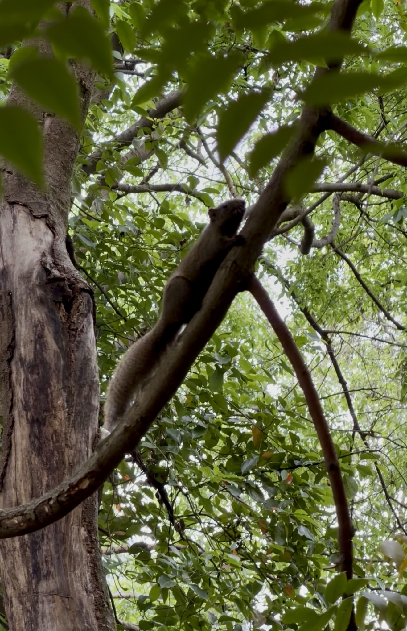 巫嘉伟介绍,成都市区90%以上的松鼠均为赤腹松鼠,这是成都本地原生物种,原本栖息于龙泉山、龙门山等周边山林,天性偏好植被茂密、郁闭度高的环境。虽然赤腹松鼠早已进城扎根,但它们对栖息地有着明确的选择,多出现在公园、大学校园等老树林集中、绿化连片的区域;而在高楼密集、新栽树木较多的小区,其踪迹仍较为少见。