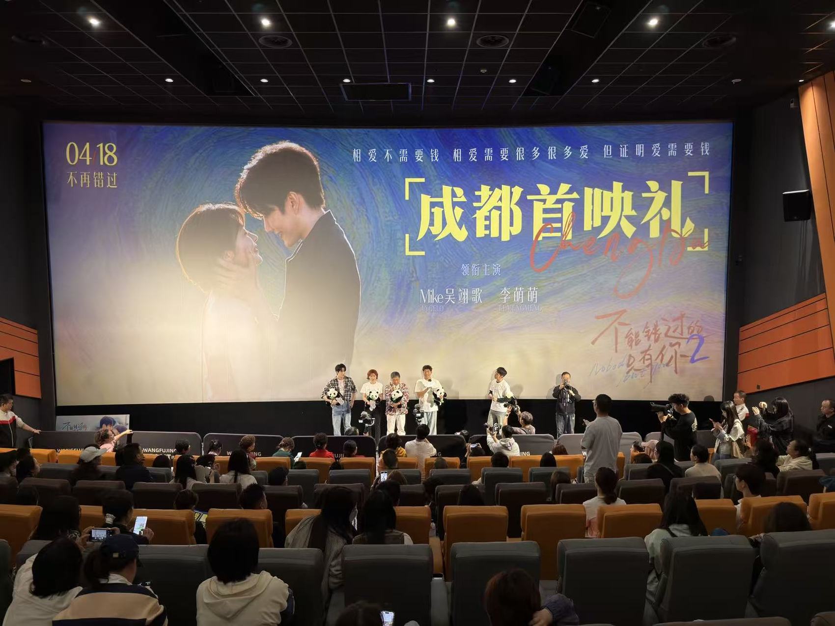 4月14日下午,在第十三届中国网络视听大会举行之际,由成都市锦江区参与投资拍摄的爱情电影《不能错过的只有你2》在王府井太平洋影院举行首映礼。导演陈晨、监制刘流携主演Mike吴翊歌、李萌萌等主创团队亮相,与现场观众一同奔赴了一场关于烟火与浪漫的光影之约。据悉,影片将于4月18日正式开启全国公映。