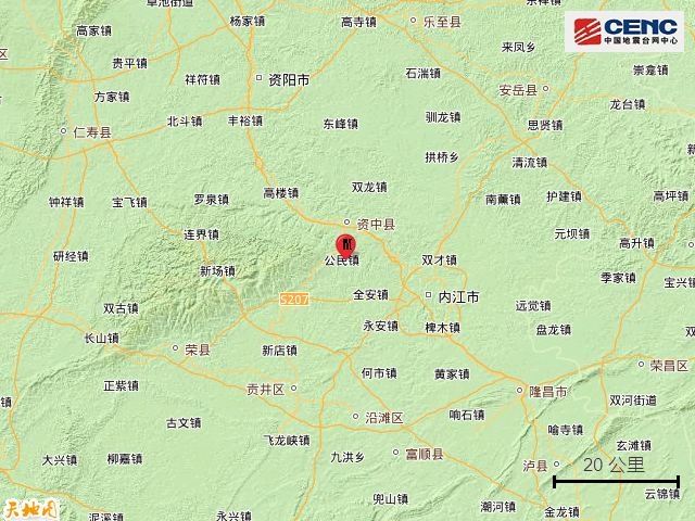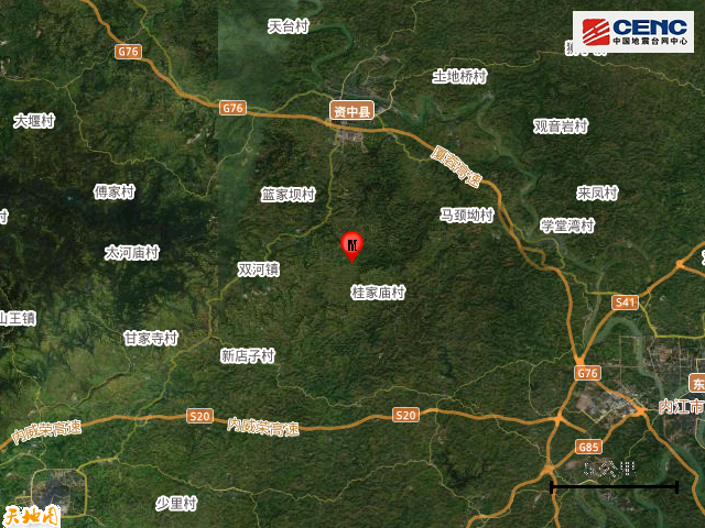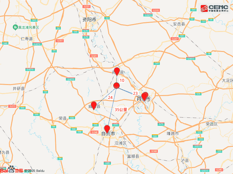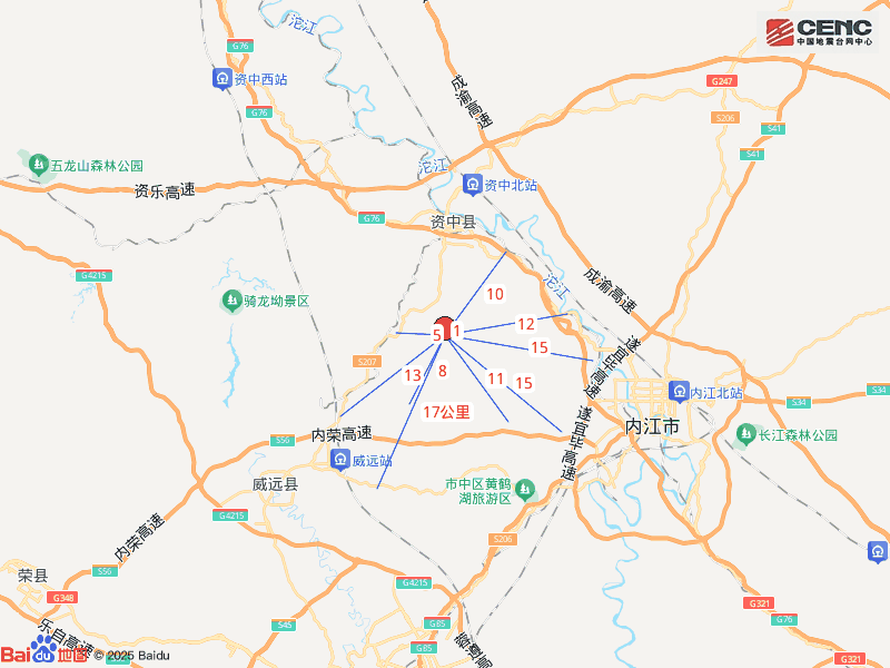 周边县城:震中距资中县10公里、距东兴区23公里、距市中区23公里、距威远县24公里、距大安区35公里,距内江市22公里,距成都市132公里。