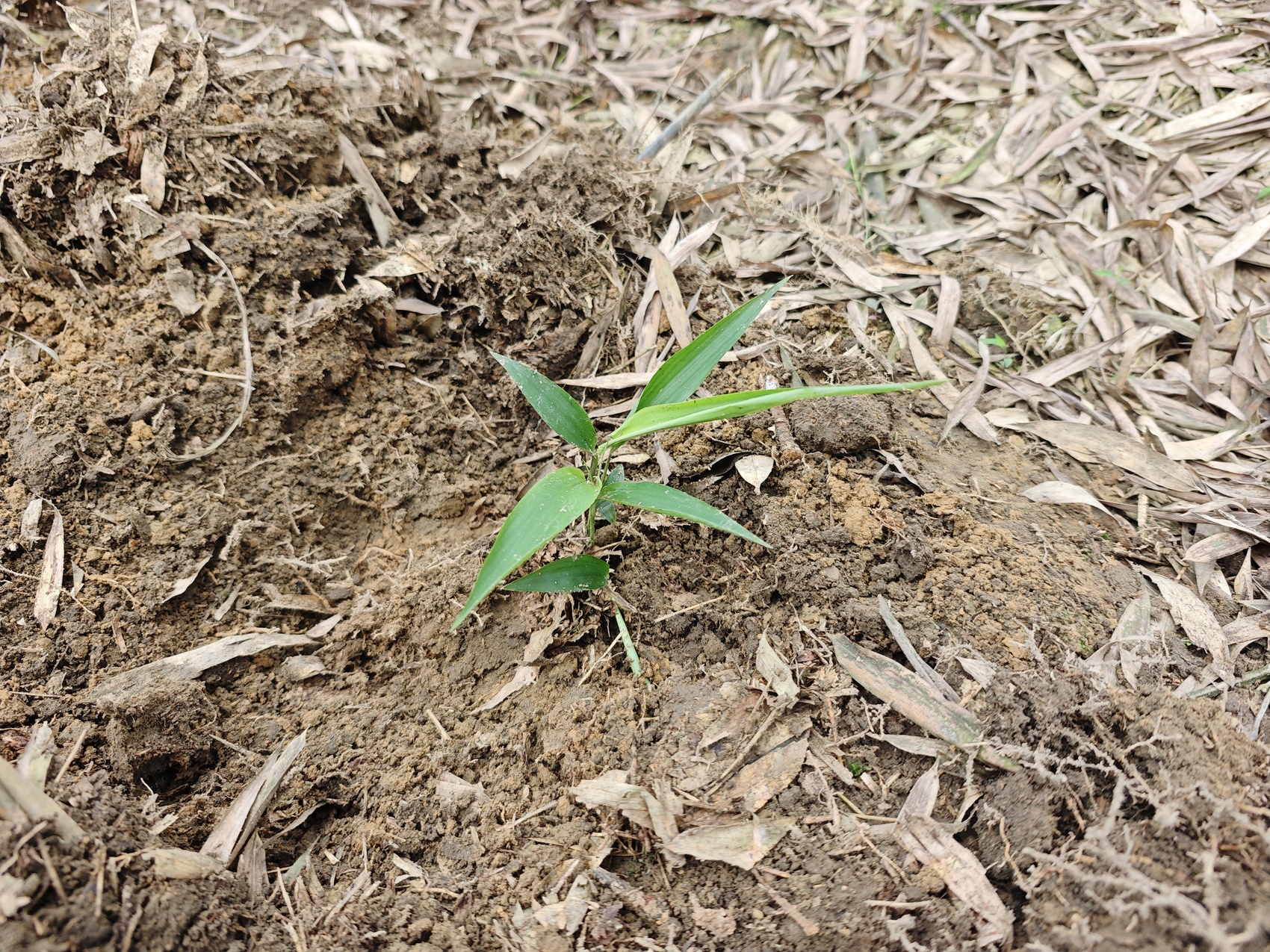 4月13日,宜宾市长宁县双河镇大合村连绵的楠竹林下,数十名村民背着竹篓、拿着锄头,或打窝、或分拣苗木、或移栽覆土,一派热火朝天的景象。