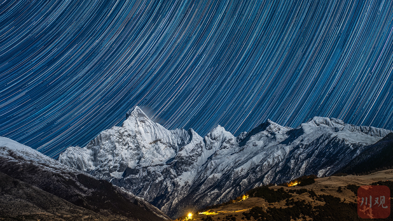 星空流转轨迹定格为唯美星轨,与皑皑雪峰相映成景。 C视觉签约摄影师 田相和 摄