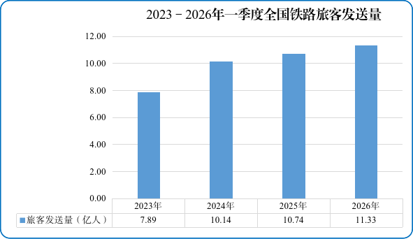 图12023—2026年一季度全国铁路旅客发送量