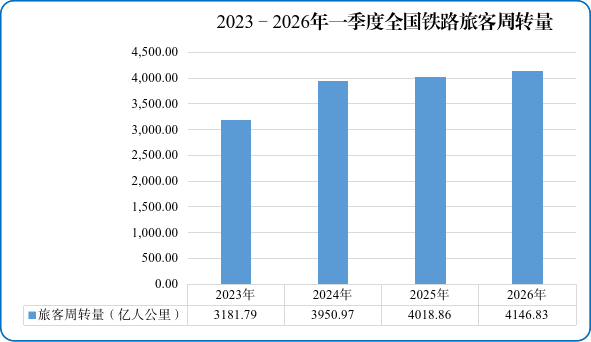 图22023—2026年一季度全国铁路旅客周转量