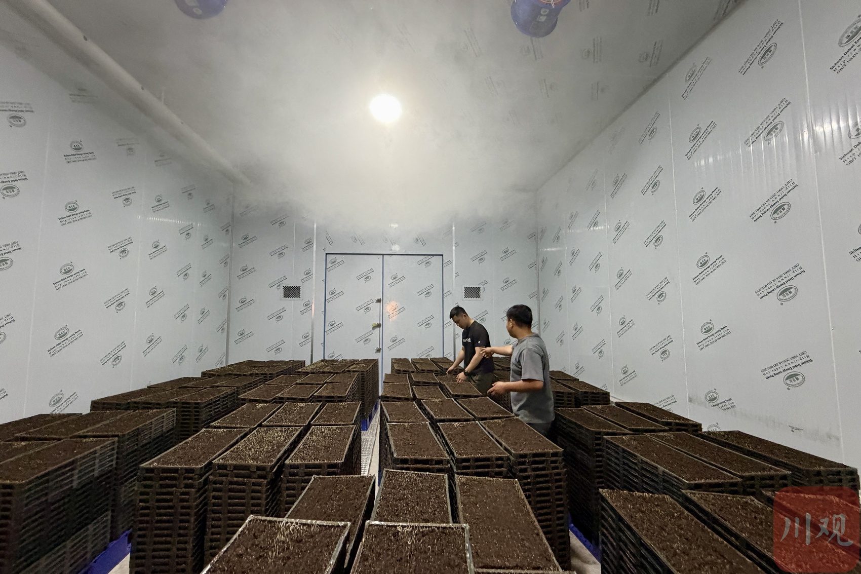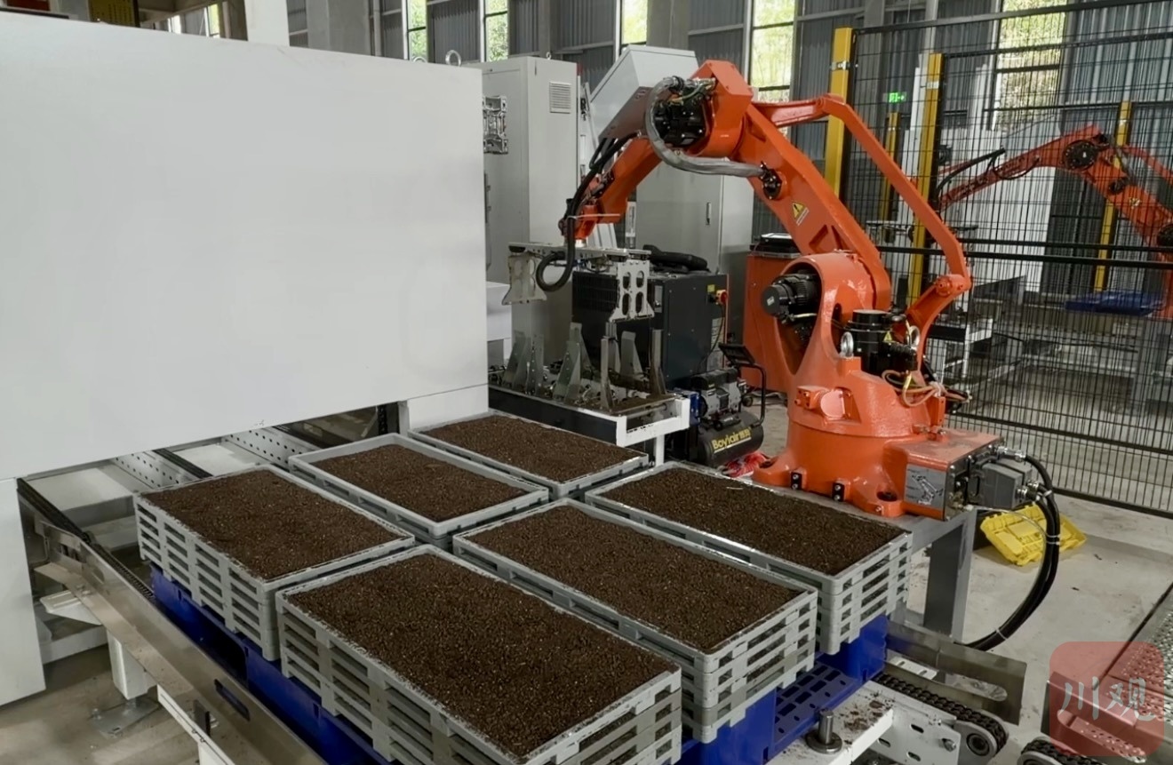 “每分钟20盘,两条产线日产能达19200盘,足够支撑周边2万亩高标准农田用秧。”四川凯城农业发展有限公司现场负责人刘仕丹介绍,相较传统人工育秧日均数百盘的产能,新产线不仅效率大幅提升,更通过智能控制系统精准调控播种量、覆土厚度与温湿度,为秧苗打造恒温恒湿的生长环境,彻底解决了出苗不均的难题。