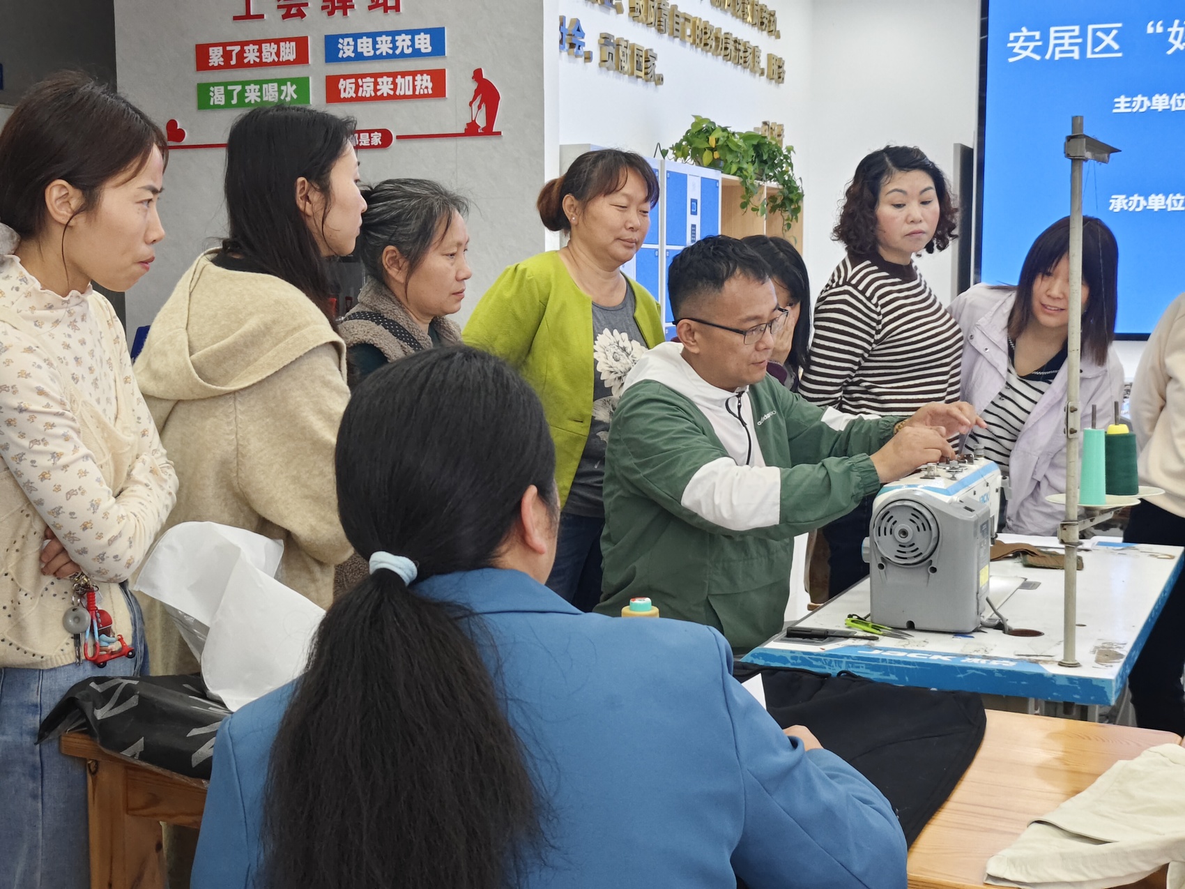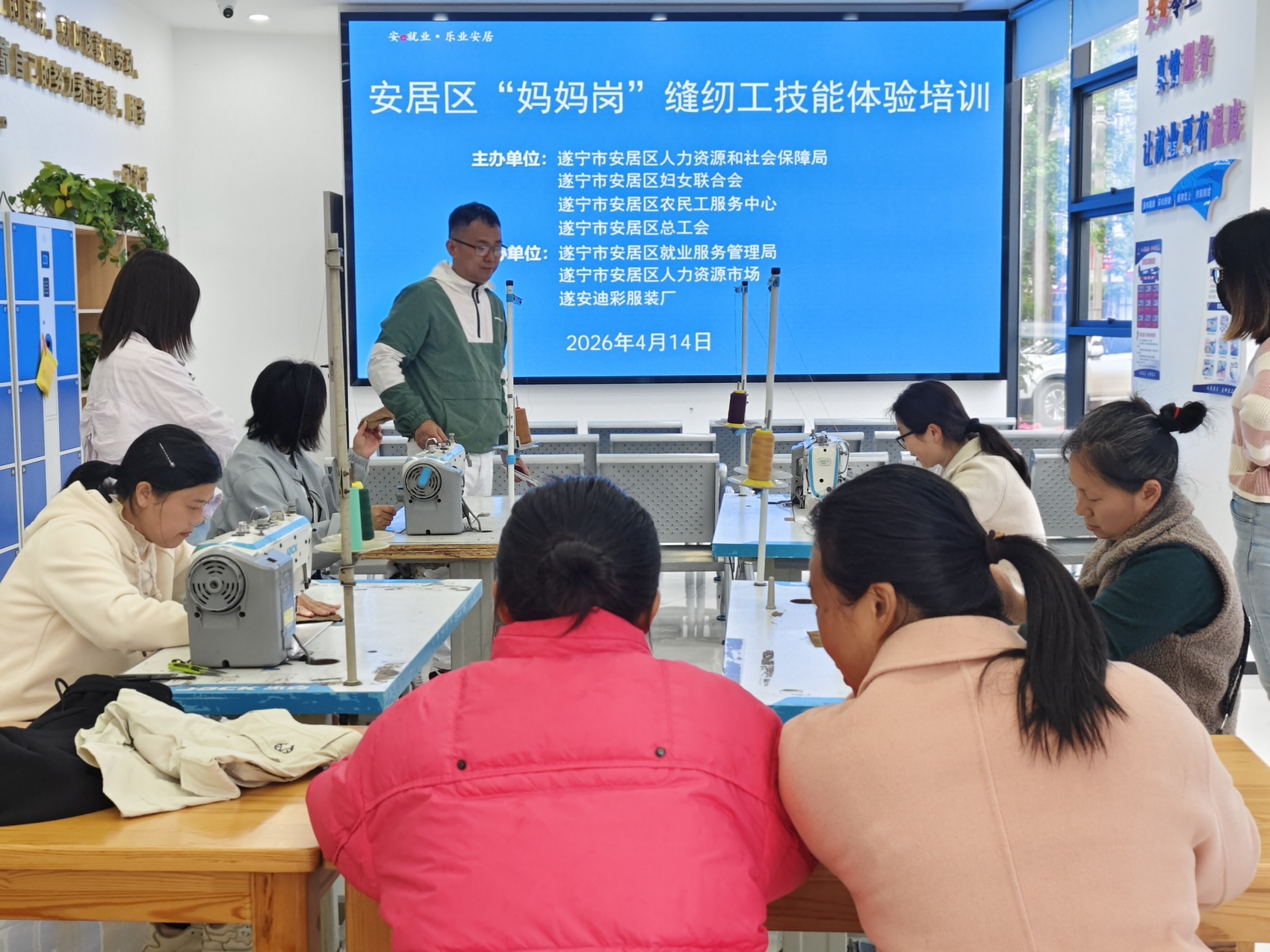 “这个缝纫机操作起来不是很难,还是好上手。”“这次活动还是很有意思,先体验再看岗位。”4月14日,遂宁市安居区就业创业服务中心内,4台电动缝纫机整齐排列,机器运转声此起彼伏,一场别具特色的“妈妈岗”缝纫工技能体验培训活动在此火热开展。此次活动将某服装厂的生产设备直接搬进就业服务场地,让宝妈们零距离开展岗位实操体验。这种“先体验、再求职”的模式是安居区聚焦宝妈群体就业需求、创新就业服务模式的一次探索,旨在打通灵活就业供需对接的“最后一公里”。