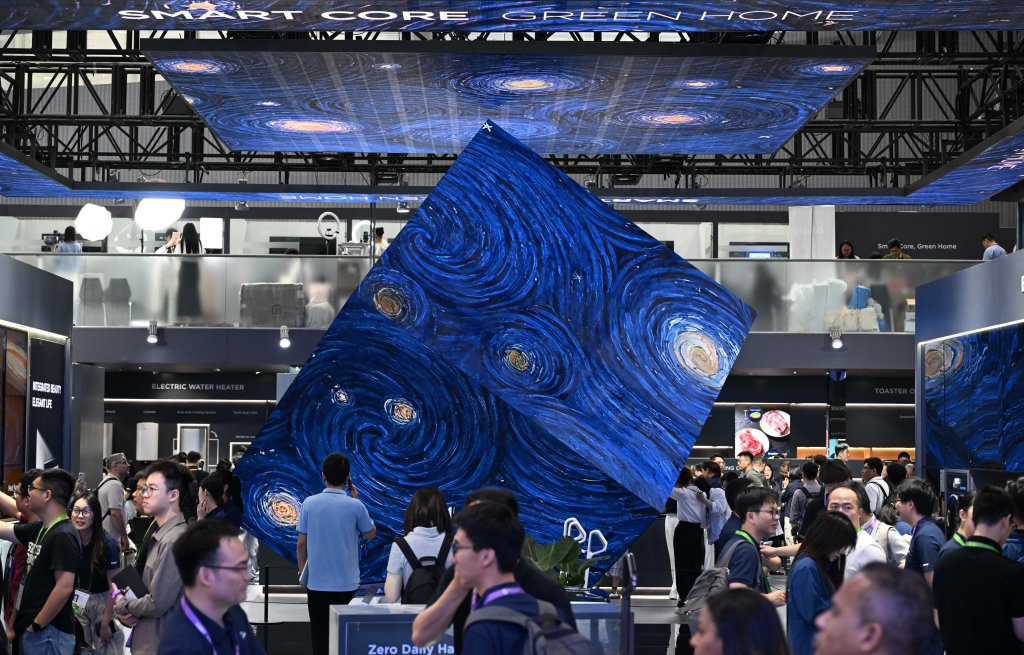 这是4月15日拍摄的美的智慧家电展区。