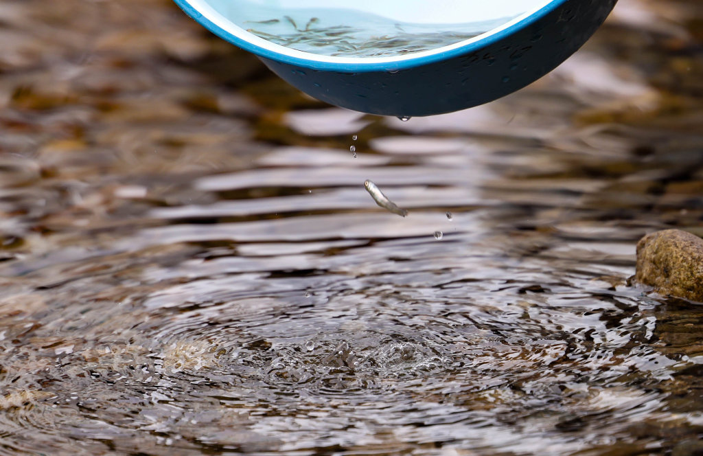 4月15日,鱼苗被放流入江。