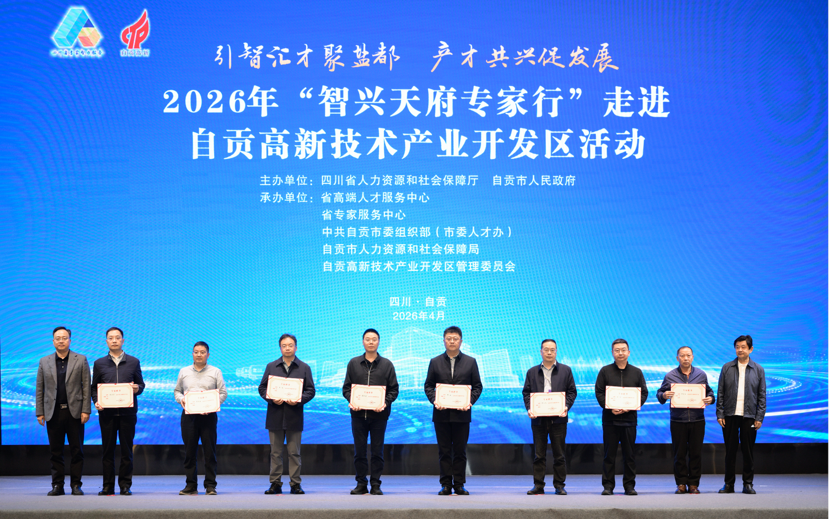 4月15日,2026年“智兴天府专家行”走进自贡高新技术产业开发区活动正式启动,并随即展开首日智力服务。来自川渝地区的22名高层次专家组成服务团,以“引智汇才聚盐都 产才共兴促发展”为主题,通过技术指导、项目对接、专题授课等多元形式,深入各基层单位、企业一线,为当地产业升级、社会治理精准“把脉问诊”、献智赋能。