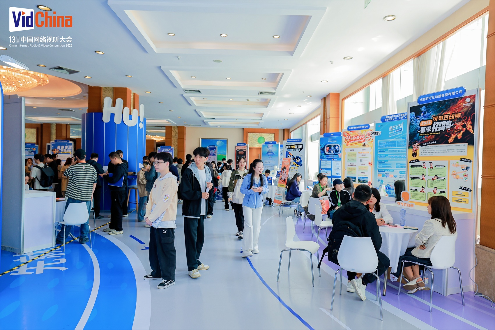 4月15日,第十三届中国网络视听大会开幕日,一抹青春色彩让人直观感受到视听行业的蓬勃活力。抖音、快手、优酷、B站、可可豆……视听行业大厂的招聘展板前,吸引众多高校学子驻足。