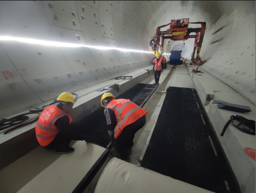 18号线三期是市域快线,设计时速140公里,且穿越人口密集、商业繁华的中心城区,对减振降噪要求较高。中铁十五局集团轨道工区项目部工程部部长孙剑介绍,该线路部分地段施工采用减振垫浮置板道床施工工艺,相当于在轨道道床里铺上一层“软垫”,可大幅降低列车运行时的振动和噪声。“相较于常规混凝土浇筑的一次成型,这种工艺需要按步骤分3次浇筑混凝土,我们在骡马市站修建了临时混凝土下料口,直接将混凝土输送至施工点附近,既确保混凝土浇筑时性能达标,还大幅缩短运输时间,提升轨道铺设施工效率。”