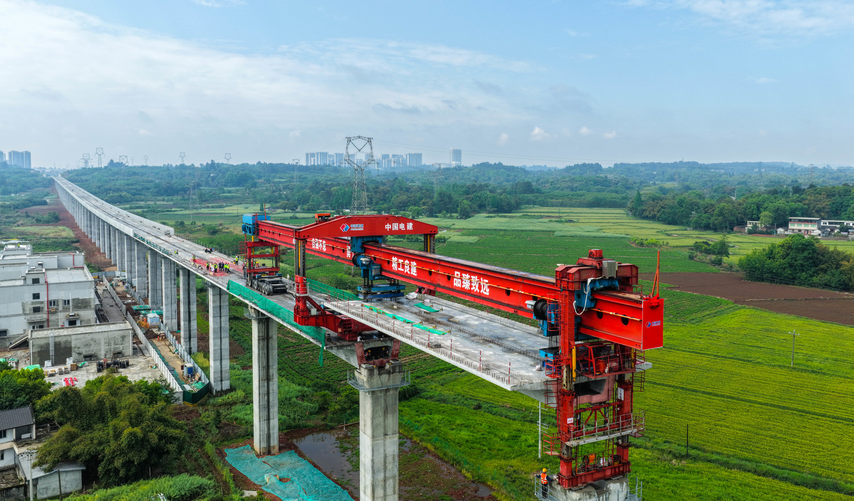 “成眉线成都段有13公里多的高架,施工难度较大。”四川成眉轨道交通有限公司建设事业部土建管理人员闵杰介绍,为高效推进架梁施工,施工团队采用了“步履式无轨过孔”技术——无需铺设专用轨道,通过三个支腿实现“步履”行走方式,再通过架桥机自行跨越桥孔和梁体定位,确保施工更稳定,安全更可控。