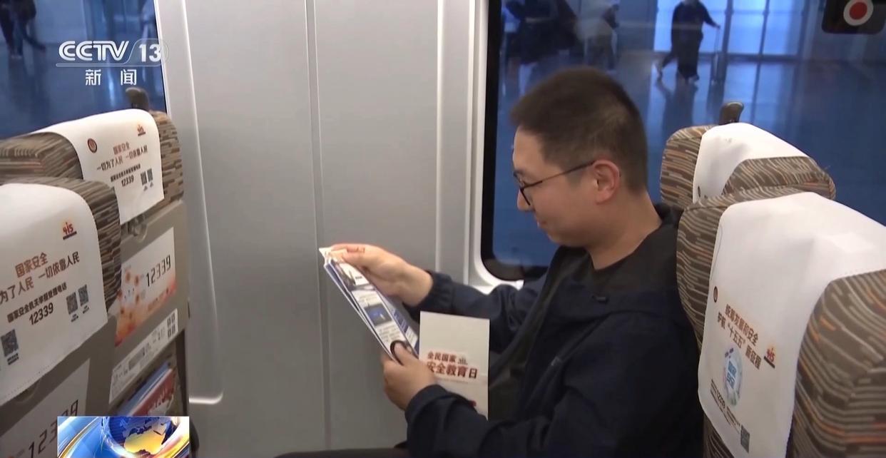 旅客们陆续登上这趟“国家安全宣传列车”。走进车厢,仿佛置身于一个流动的“国安课堂”。从行李架、小桌板到车窗、座椅靠背,国家安全主题海报和知识图文手册随处可见。车内同步循环播放国家安全宣传片和典型案例警示教育片,让国家安全知识在旅途中入脑入心。