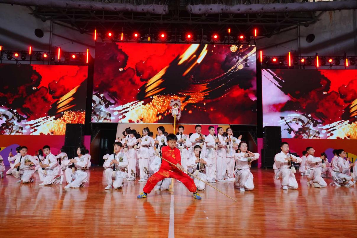 开幕式现场,来自什邡市14所学校以及衡山路学校近600名师生带来以“跃动贡嘎”为主题的体育成果展演。展演分为三个篇章:第一篇章通过幼儿篮球、中小学篮球技能展示,呈现德阳学段衔接的体育课程实施成效;第二篇章中武术操、非遗舞狮、空竹、手舞龙等传统体育项目轮番登场,展示“一校一品”“一校多品”的校园体育特色;第三篇章的团体操、啦啦操、花式跳绳表演,则彰显了新兴运动项目在校园的普及成果,诠释“人人参与、个个闪光”的赛事理念。最终展演在全场齐唱赛事主题曲《乘风少年》中落下帷幕,生动展现了德阳学子蓬勃向上、勇于拼搏的精神风貌。