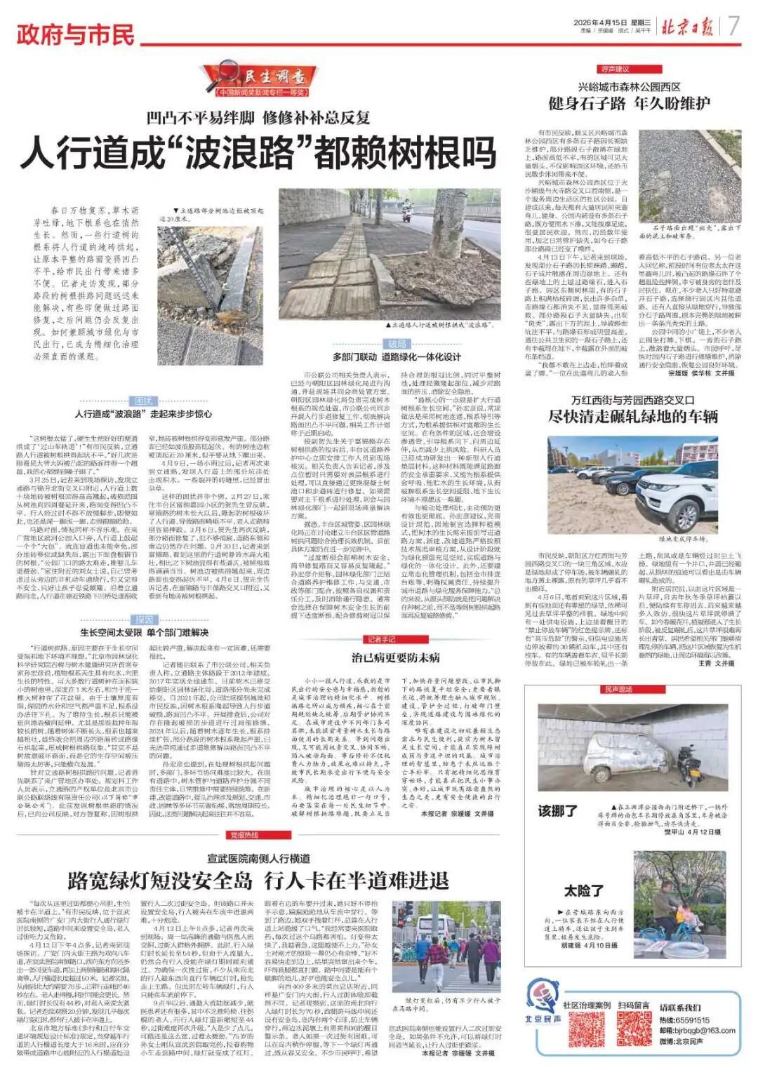 北京日报记者走访发现,部分路段的树根拱路问题迟迟未能解决,有些即便做过路面修复,之后问题仍会反复出现。如何兼顾城市绿化与市民出行,已成为精细化治理必须直面的课题。