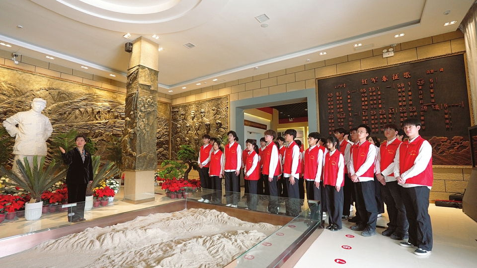 吕梁学院马克思主义学院副院长贺晓娟向学生讲述红军东征时间线及路线。