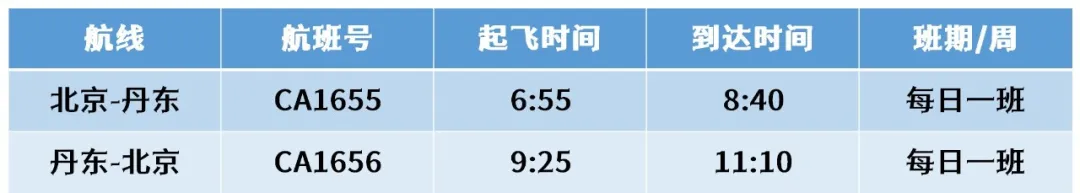 5月1日起,丹东⇋北京首都往返,中国国际航空公司执飞