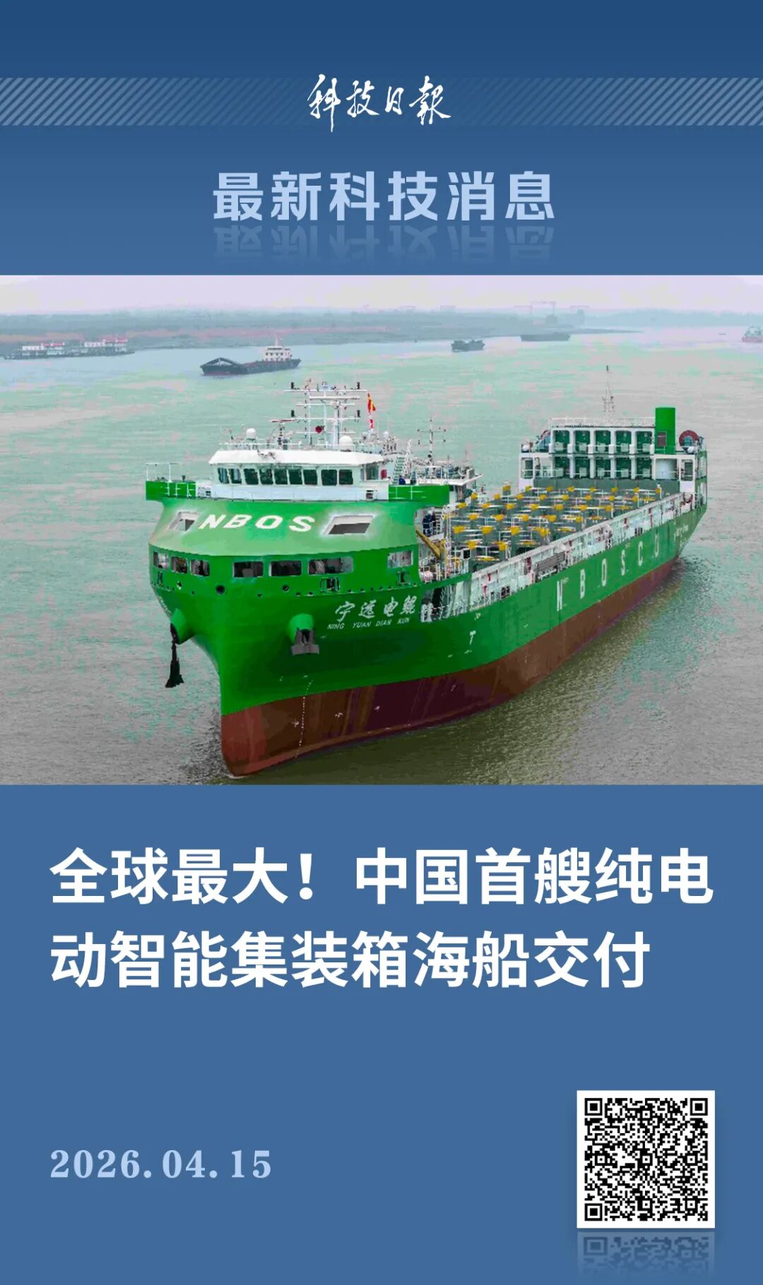 4月15日,中国首艘、世界最大740TEU纯电动智能集装箱海船“宁远电鲲”号圆满完成各项试验,正式交付启航。该船由中船集团上海船舶研究设计院自主研发设计、中船集团第七〇四研究所提供新型纯电推进系统,以零碳、智能、高效三大突破,开启我国沿海集装箱运输绿色转型新篇章。