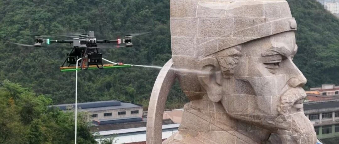 无人机喷水清理。图源:广西消防