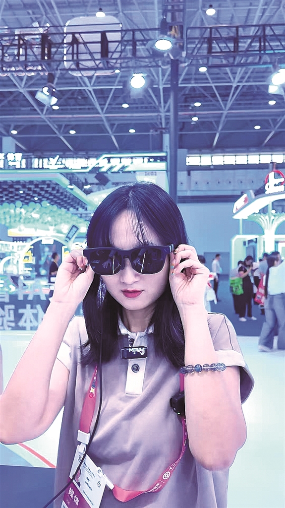 图②:在科技消费展区,观众正在试戴即将上市的最新款XR眼镜。光明网记者 杨亚楠摄/光明图片