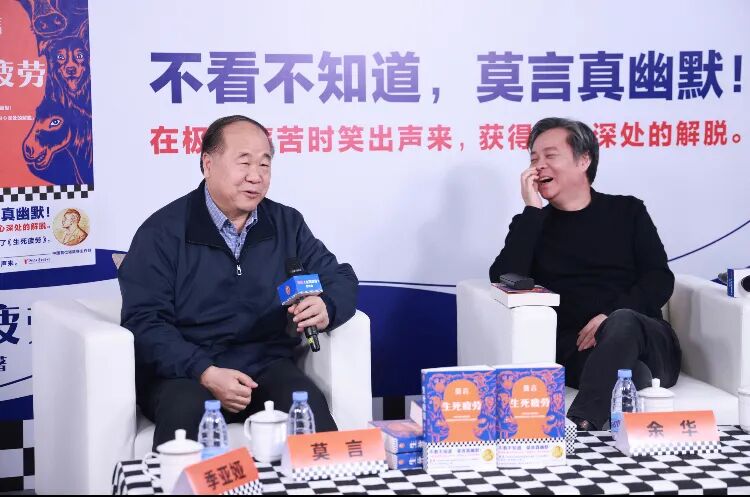 2022年,莫言携余华、西川一起为新版《生死疲劳》开线上发布会,直播观看人次超300万。话题“莫言余华是来说相声的吧”登上实时热点榜。有弹幕称“这三个文学顶流聚在一起堪比德云社开会”“本来关注莫言想学点文学,现在只想听脱口秀”……