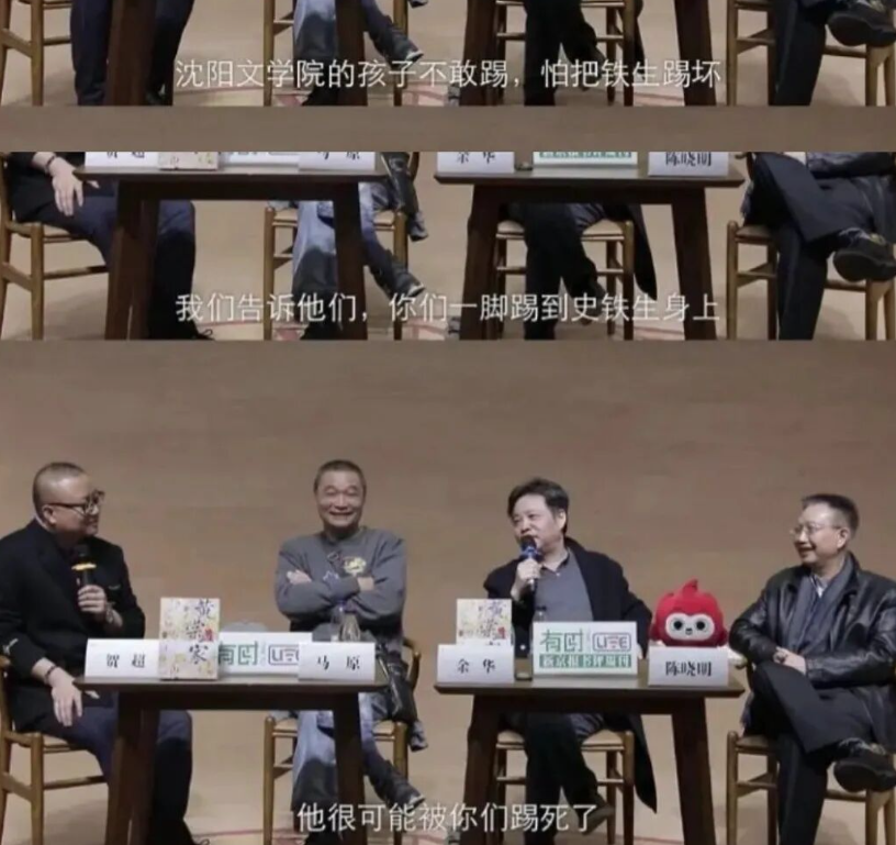 余华回忆当年和莫言、史铁生在沈阳辽宁文学院的那场足球赛时,余华自述,他们把轮椅上的史铁生推到球门前守门,还跟对手说:“你们要是把球踢到史铁生身上,他很有可能被你们踢死。”这段经历后来也成了网络流传甚广的经典桥段。