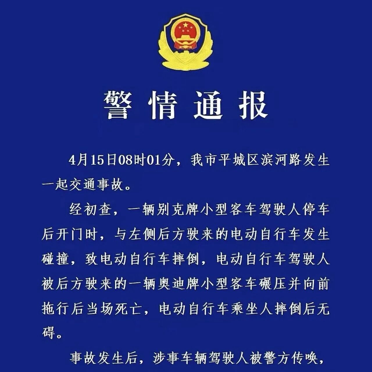 4月16日,大同市公安局交通管理支队发布警情通报: