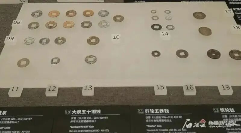 ▲新疆博物馆展出汉晋时代的各种钱币。新疆日报记者 贾春霞摄