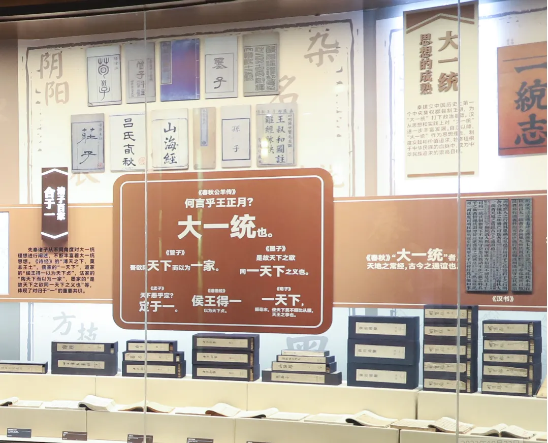 ▲民族文化宫铸牢中华民族共同体意识文物古籍展“大一统”单元,展示了大量记录“大一统”历史的古籍。石建杭摄