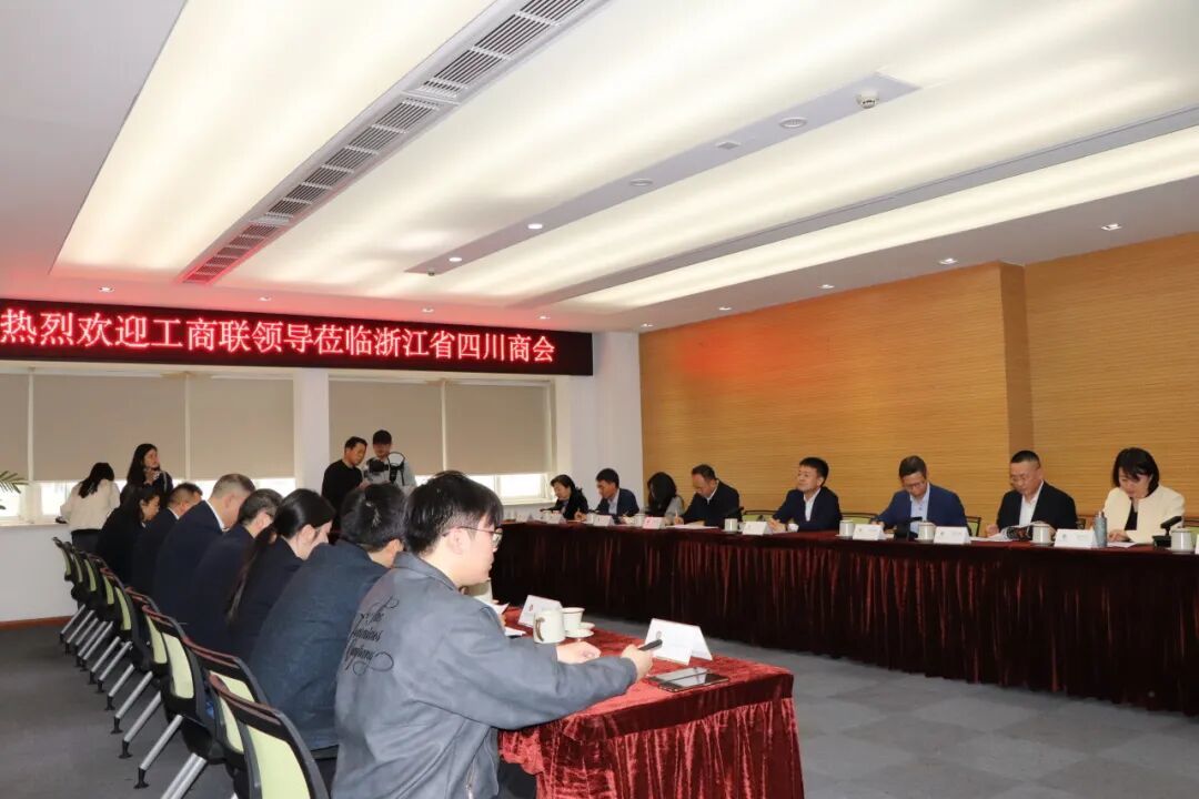 4月14日上午,四川省委统战部副部长、省工商联党组书记景临和浙江省工商联党组成员、副主席元成茂一行赴浙江省四川商会,与浙江省四川商会会长何勇、执行会长赵崇甫、监事会主席陈均等班子成员就商会建设发展和深化东西部协作进行座谈交流。
