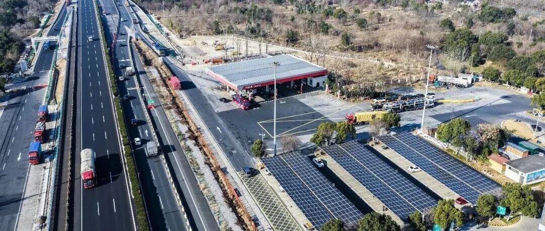 G50沪渝高速长兴服务区内的太阳能光伏板下是升级完成的高速服务区充电站(2026年1月7日摄,无人机照片)。新华社记者徐昱摄