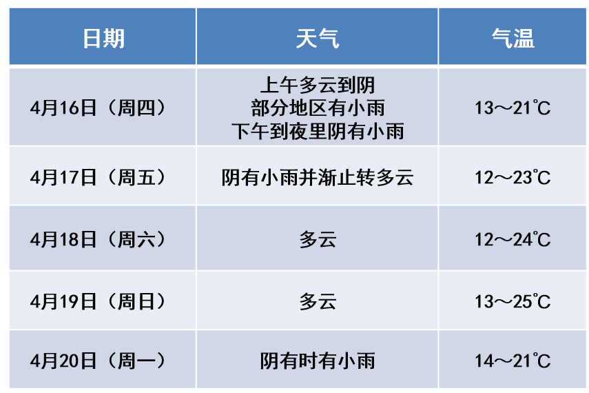 4月18日最低气温: 13℃到14℃