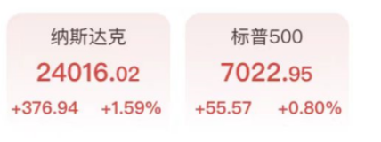 截至收盘,道琼斯工业平均指数下跌72.27点,跌幅0.15%,收于48463.72点,纳斯达克综合指数上涨1.59%,收于 24016.02 点,标普500指数上涨0.80%,收于7022.95点。与此同时,纳斯达克指数迎来11连阳,为2021年11月以来首次;期间累计涨幅达15%,为2022年3月以来最佳区间表现。