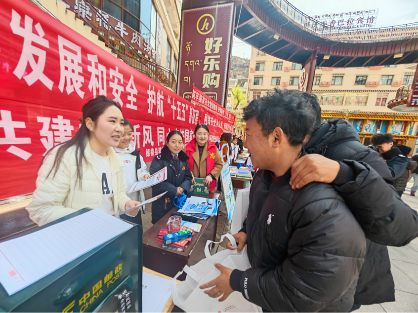 活动现场主题横幅醒目亮眼,各部门宣传展位整齐排布,图文并茂的安全知识展板有序陈列,工作人员身着制服、佩戴绶带,主动向过往群众发放汉藏双语宣传手册,耐心开展面对面答疑、案例讲解。前来咨询学习的群众络绎不绝,汉藏双语讲解声、交流互动声交织在一起,浓厚的国家安全宣传氛围扑面而来。各部门立足职能职责,聚焦政治安全、网络安全、生态安全、金融安全、数据安全等重点领域,将专业法律法规转化为通俗易懂的百姓语言,让国家安全知识真正走进群众心里。